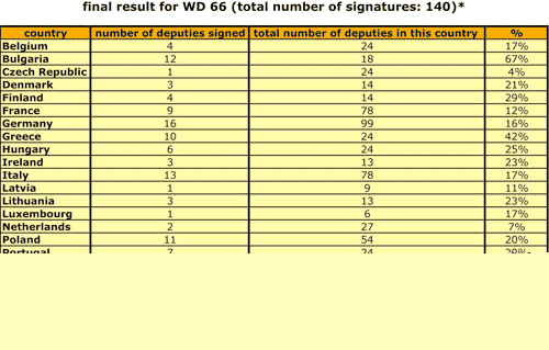 The signatures for written declaration Nr.66 were not enough to let it pass. We got 140 signatures so it lapsed, because 393 would have been the minimum for a success.